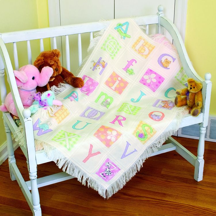 The pastel colours of this beautiful ABC blanket would look gorgeous in any baby’s bedroom, or would make a perfect present for a first or second birthday.