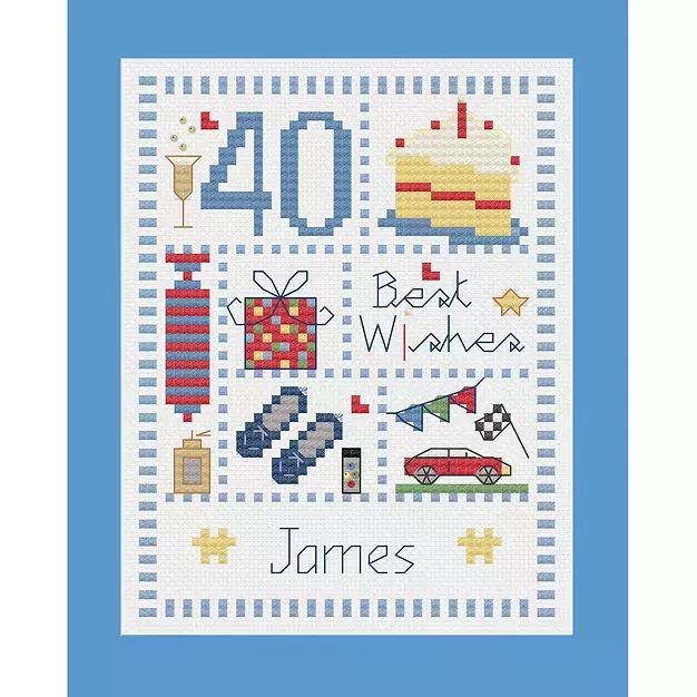 The Male Sampler Birthday Card Cross Stitch Kit, by Nia, includes numbers and alphabet for personalisation, perfect for any age and name. With a charming male-themed design, it's an ideal way to celebrate a special occasion with a custom touch.