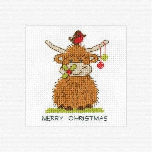Capture the charm of a winter Highland scene with the Highland Baubles Christmas Card Cross Stitch Kit by Heritage Crafts. This beautifully designed kit features a festive Highland cow adorned with colourful baubles, blending traditional Scottish character with a warm Christmas spirit.