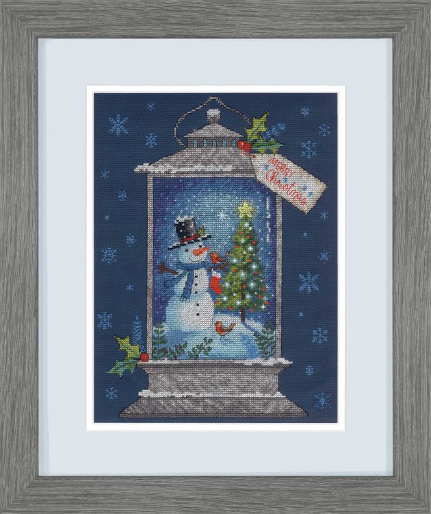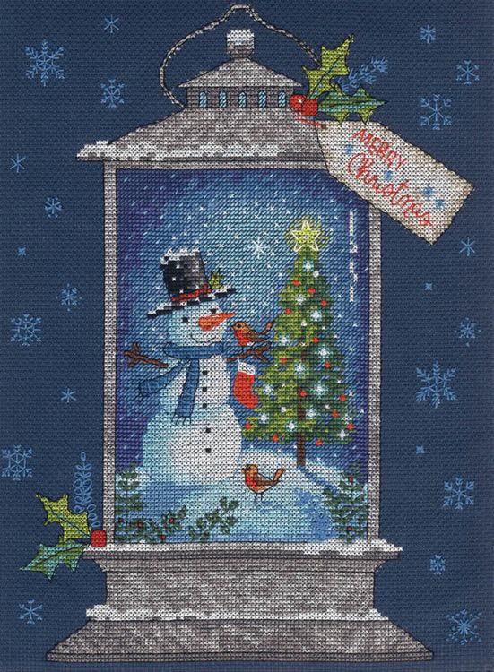 A truly joyful scene that is perfect for the winter holidays, this snowman themed counted cross stitch from Dimensions features an abundance of festive holiday icons! Inside the lantern is a sparkling adorned Christmas tree, a jolly snowman wearing a top hat and scarf and two lovely robins.