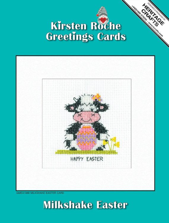 Bring a touch of countryside charm to your seasonal stitching with the Milkshake the Cow Easter Card Cross Stitch Kit from Heritage Crafts. Featuring an adorable, characterful cow dressed for Easter, this delightful design captures the playful spirit of springtime with soft colours and whimsical detail.