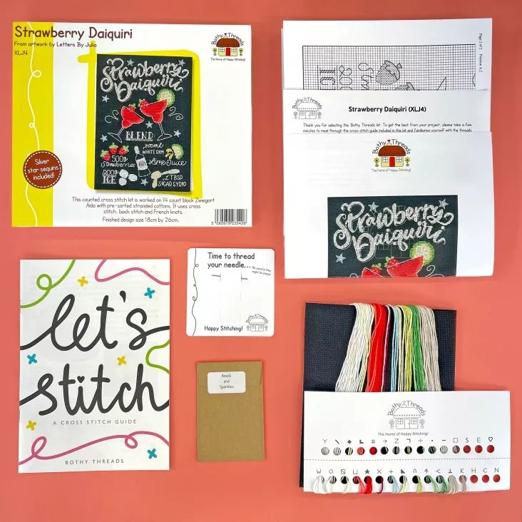 Add a splash of summer to your stitching with the vibrant Strawberry Daiquiri Cross Stitch Kit, from Bothy Threads. Featuring a stylish chalkboard-inspired cocktail recipe design by Letters by Julia, this kit captures the fun and flavour of a classic drink with a modern, decorative twist.