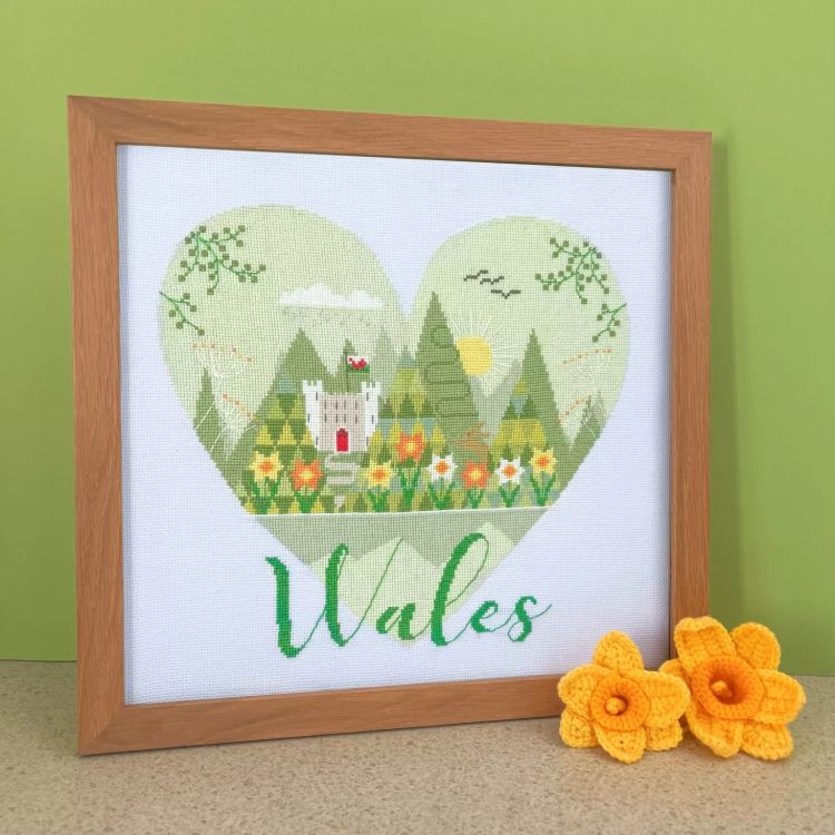 Capture the charm and tranquillity of the Welsh countryside with the Heart of Wales Cross Stitch Kit, by Bothy Threads. Designed by Hilary Yafai, this beautiful piece features a scenic landscape framed within a heart, complete with a castle, rolling hills and bright daffodils that bring a touch of Wales into your home.