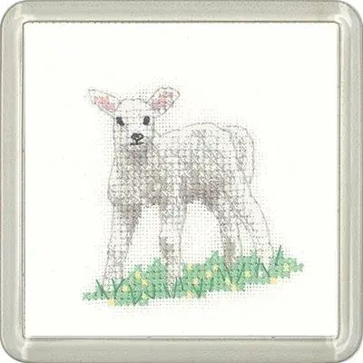 The Little Friends Lamb Coaster Cross Stitch Kit, by Heritage Crafts, is a charming and compact project, perfect for stitchers of all levels. Featuring an adorable baby lamb standing in a buttercup-filled meadow, this design is part of the popular Little Friends collection.