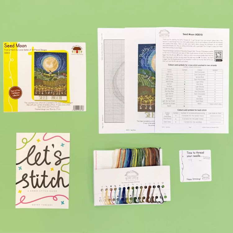 Celebrate the quiet beauty of nature with the Seed Moon Cross Stitch Kit by Bothy Threads. This enchanting design, created by Driftwood Designs, features a peaceful countryside scene beneath a glowing moon, with delicate plants and birds capturing the gentle rhythms of the natural world.