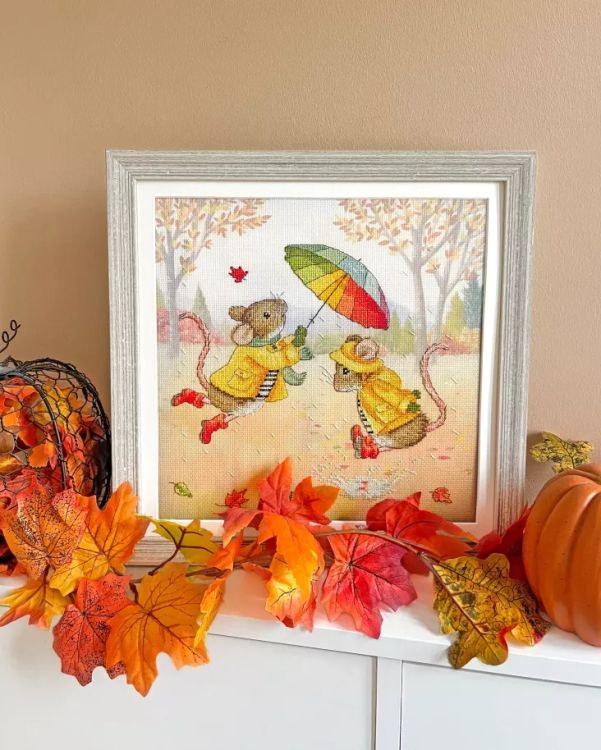 Celebrate the beauty of rainy days with Sunshine & Showers Cross Stitch Kit, a heartwarming cross stitch kit from Bothy Threads. Featuring an endearing scene of two little mice in bright yellow raincoats, this design captures the simple joy of splashing through puddles beneath a shared umbrella.