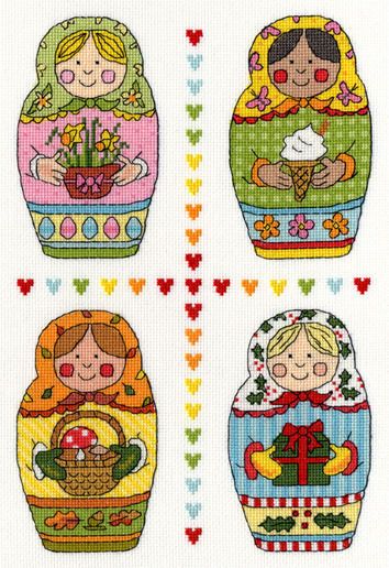 A colourful and bright kit, this design features four different Russian dolls, each representing a season of the year.