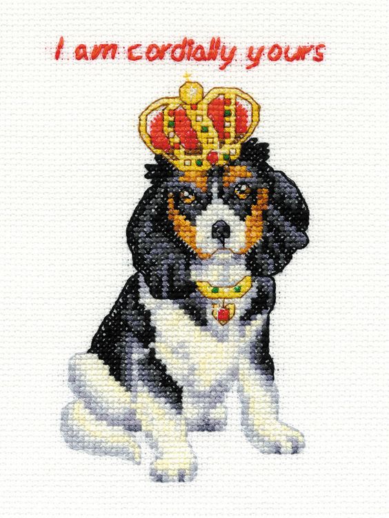 Giving one of the most popular dog breeds in the United Kingdom his due grandeur, this cross stitch kit from DMC crowns the Cavalier King Charles Spaniel with an adorable little crown.