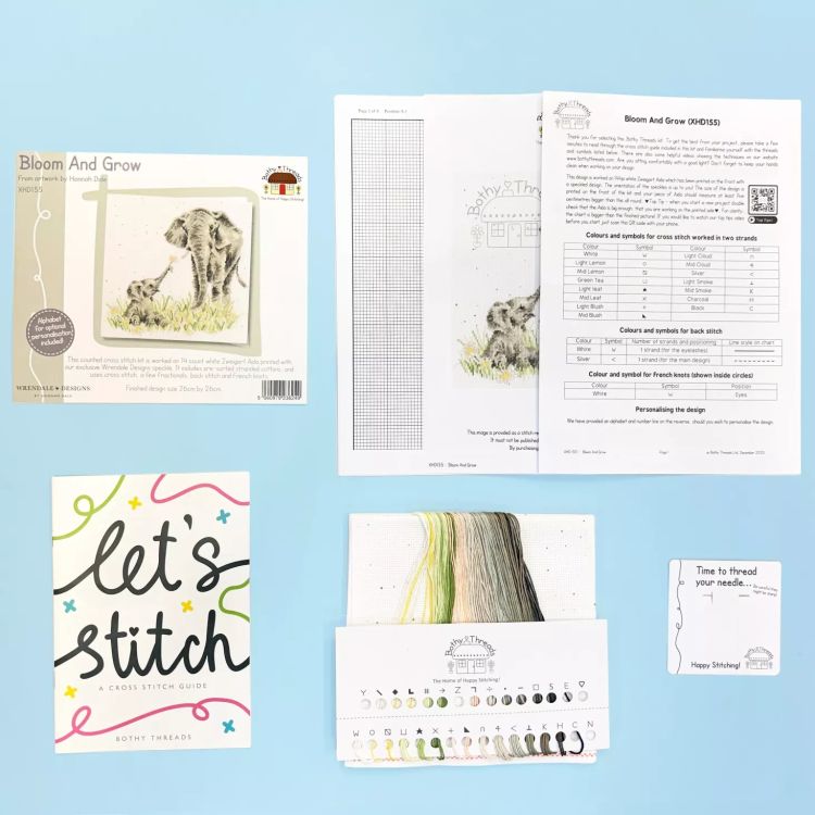 Bring a gentle touch of nature to your stitching with the Bloom and Grow Cross Stitch Kit from Bothy Threads. Designed by Hannah Dale of Wrendale Designs, this sweet illustration features a loving elephant and calf surrounded by soft florals, creating a peaceful and heartwarming scene.