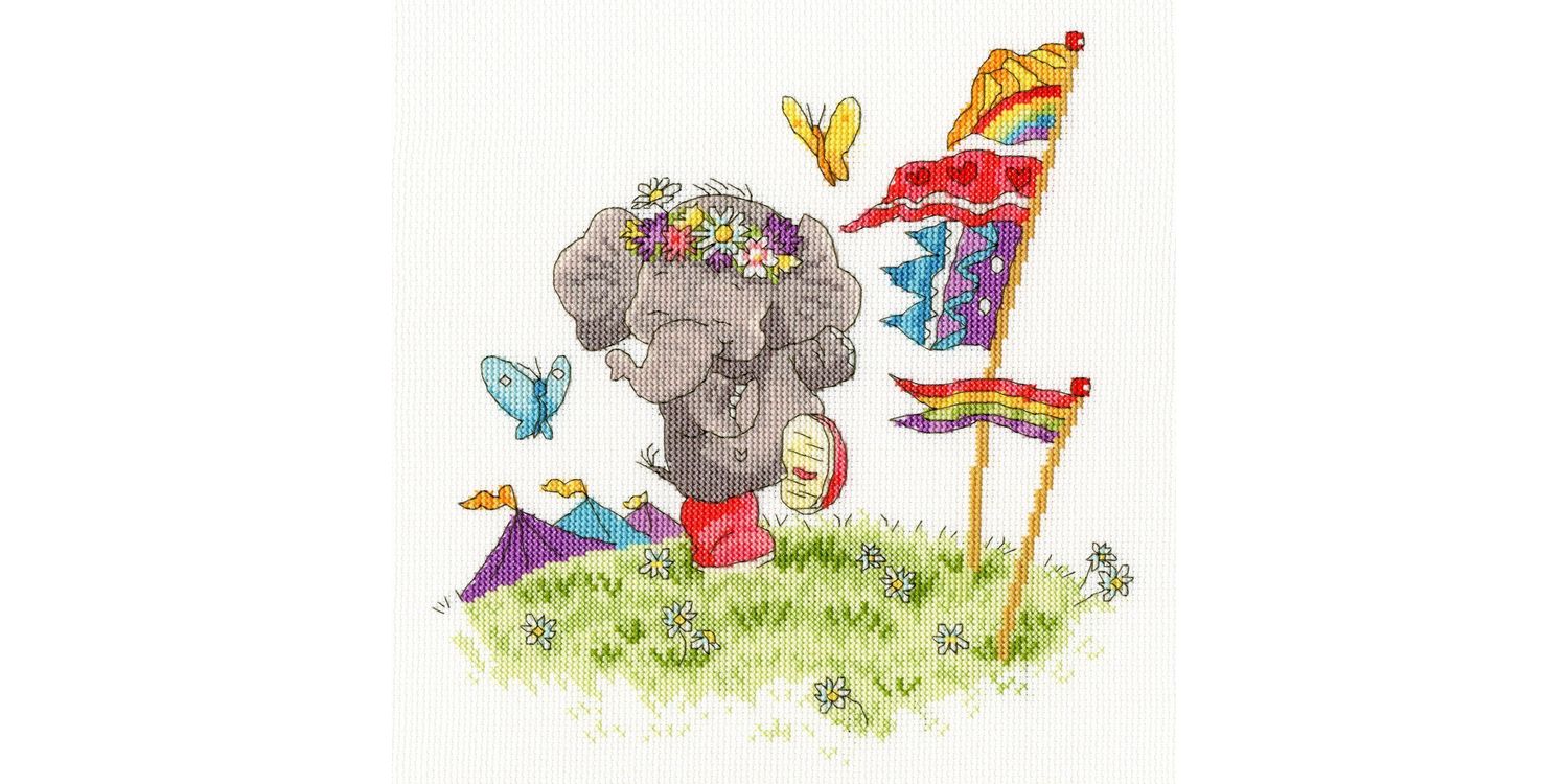 Party like an elephant at a festival with this carefree and colourful cross stitch kit from Bothy Threads. Comes with flags, tents, flowers, fields and everything else you would want at a festival.