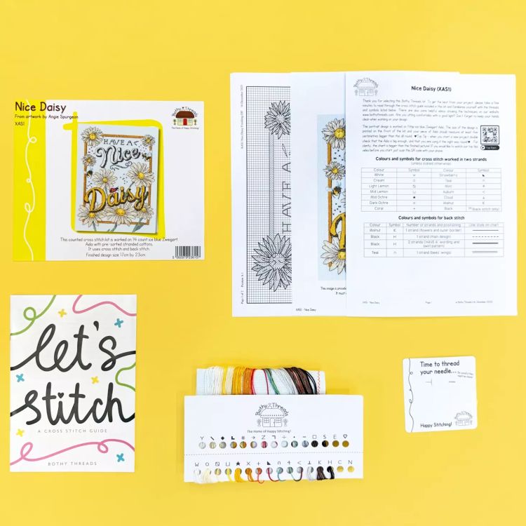 Bring a touch of springtime cheer to your stitching with the Nice Daisy Cross Stitch Kit from Bothy Threads. This delightful design, created by artist Angie Spurgeon, features bright white daisies surrounded by buzzing bees and a cheerful ladybird, along with the playful phrase “Have a nice daisy.” The fresh colours and whimsical style make it a lovely project for anyone who enjoys nature-inspired cross stitch.