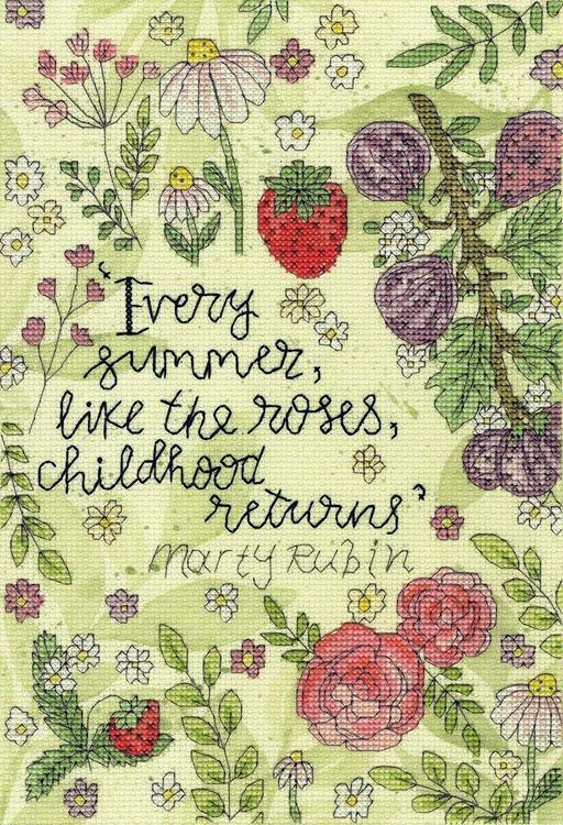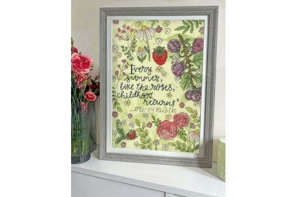 Bring the warmth and charm of summer into your stitching with the Roses of Summer Cross Stitch Kit by Bothy Threads. This beautiful design features a colourful arrangement of roses, wildflowers, fruit and foliage surrounding a nostalgic quote celebrating the joy of summer.