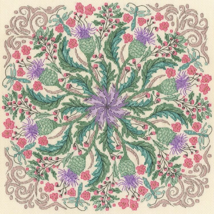 Celebrate the beauty of nature with the Swirling Thistles Cross Stitch Kit by Bothy Threads. This elegant design features a striking thistle motif surrounded by flowing decorative swirls and delicate floral details, creating a balanced and eye-catching composition inspired by traditional decorative art.