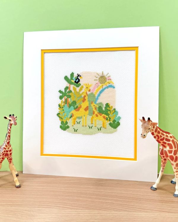Create a charming and heartwarming design with the Little Delight Cross Stitch Kit, from Bothy Threads. Based on whimsical artwork by Fable, this adorable scene features a gentle mother and baby giraffe beneath a rainbow sky, watched over by a colourful toucan, perfect for nurseries, gifts, or personalised keepsakes.