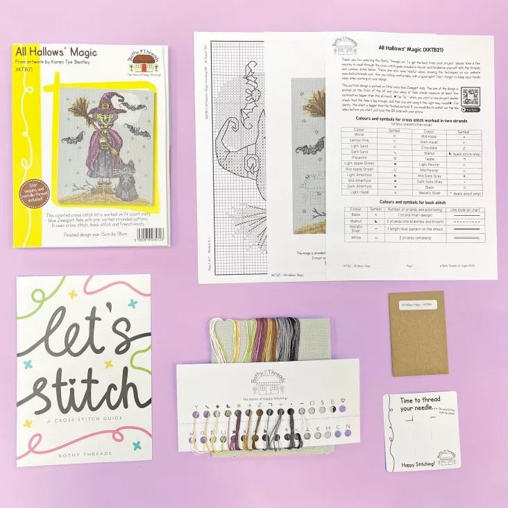 First released by Bothy Threads as part of their Autumn Collection on the 7th October 2025, this project combines a variety of techniques including cross stitch, back stitch, and French knots, adding texture and detail to the finished design. Metallic threads and sparkling star sequins enhance the night sky, giving the piece a subtle shimmer.