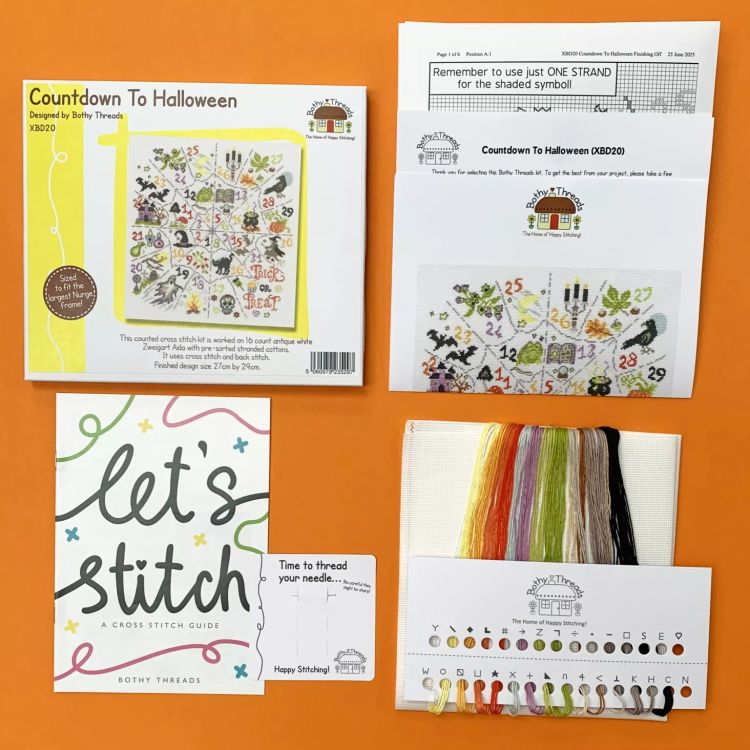 Add a touch of spooky fun to your seasonal decor with the Countdown to Halloween cross stitch kit, from Bothy Threads. This playful design features a large spider’s web filled with numbered sections to help you count down the days until Halloween.