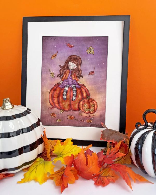 Celebrate the magic of autumn with the charming Pumpkin Perch Cross Stitch Kit, from Bothy Threads. This enchanting design from the Gorjuss collection features a whimsical girl, sitting atop a plump pumpkin, surrounded by crisp falling leaves, making it a perfect nod to cosy seasonal days and Halloween charm.