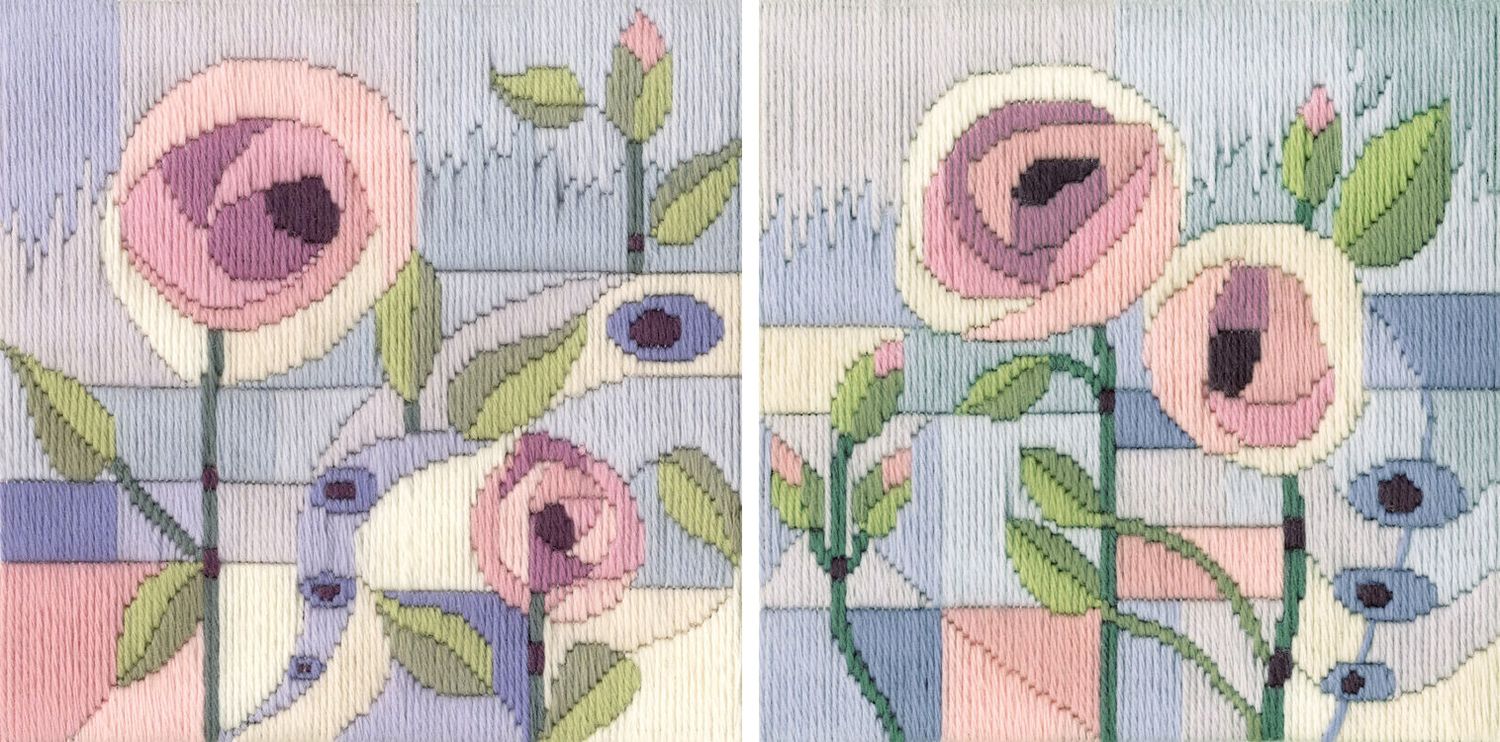 Stitch these beautiful floral designs in the Mackintosh style, with our Set of 2 - Rose Arbour & Rose Trellis Long Stitch Kits from Derwentwater Designs. A money-saving multi-buy pack of two designs including Rose Arbour and Rose Trellis florals to create.