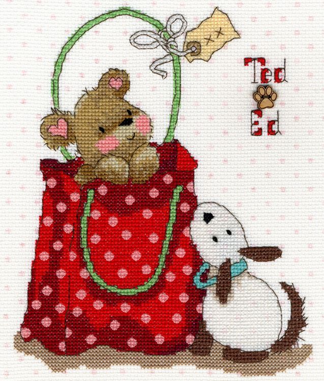 Ted & Ed get up to all kinds of mischief when they're together, and this occasion is no exception! Designed by Margaret Sherry for Bothy Threads, this In the Bag cross stitch kit features Ted perching in a rather lovely polka dot bag whilst her lovely friend Ed watches from outside the bag! A lovely kit for people of all ages, it would be perfect for use in a nursery or a child's bedroom.