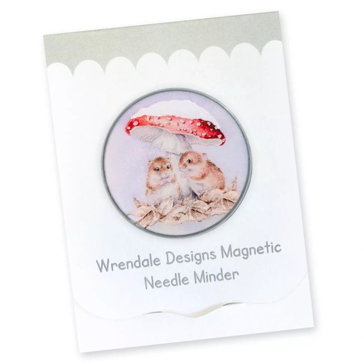 The overall size is 3.2cm round, this needle minder is based on original artwork by Hannah Dale of Wrendale Designs and matches the Mushroom At The Inn cross stitch design.