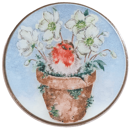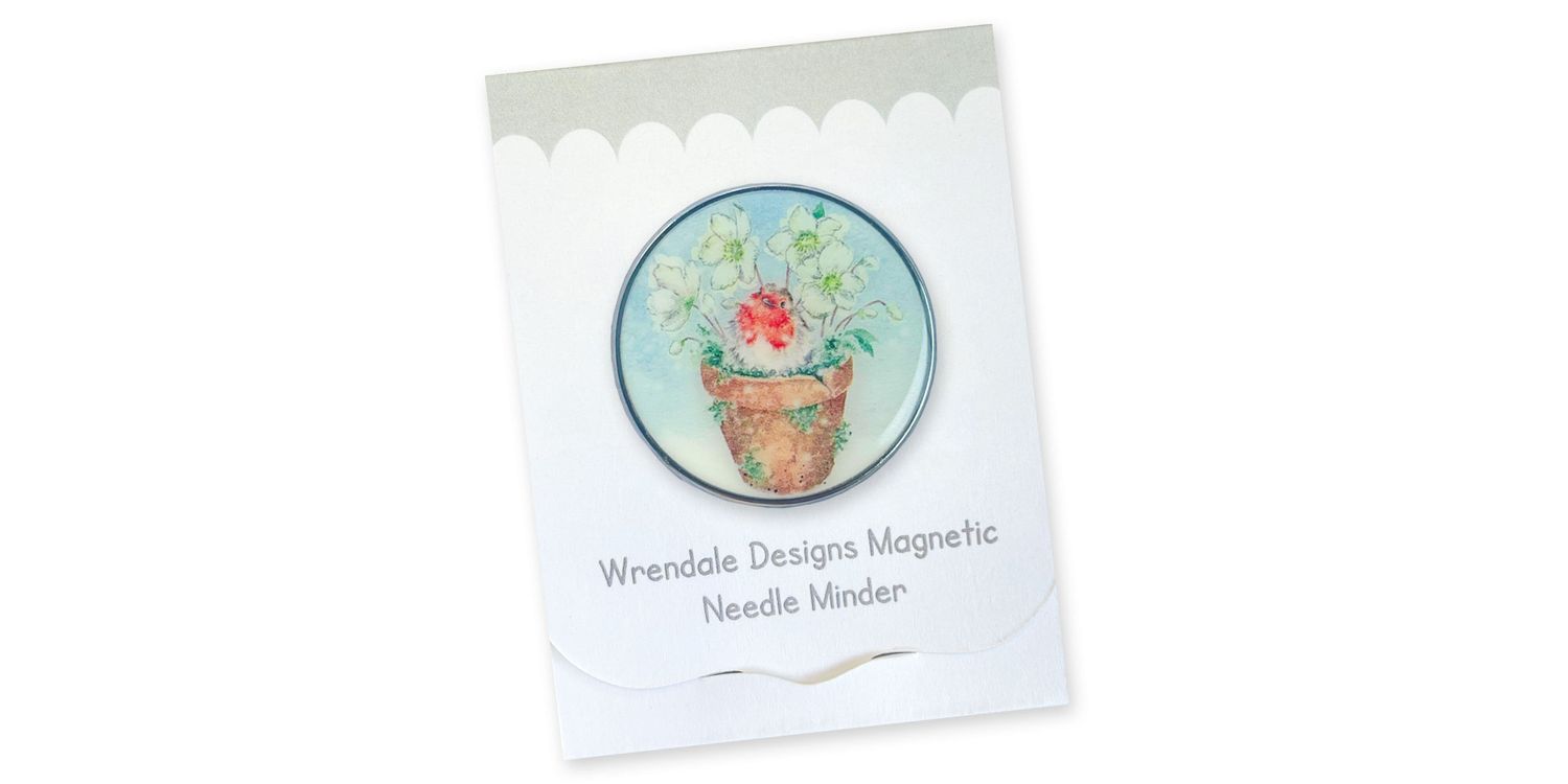 They are also great for holding your chart while stitching. The overall size is 3cm by 3cm. This needle minder is based on original artwork by Hannah Dale of Wrendale Designs, and matches the Seasons Tweetings cross stitch design.