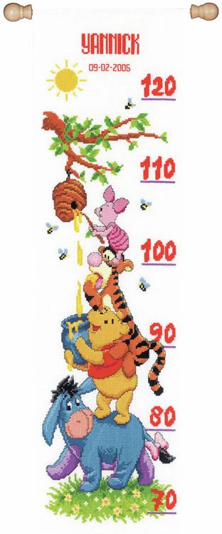 Track your little ones as they grow with the Winnie & Friends Height Chart Cross Stitch Kit. Perfect for fans of Winnie the Pooh, this wonderful children's height chart can even be personalised with the name of your child and a date.