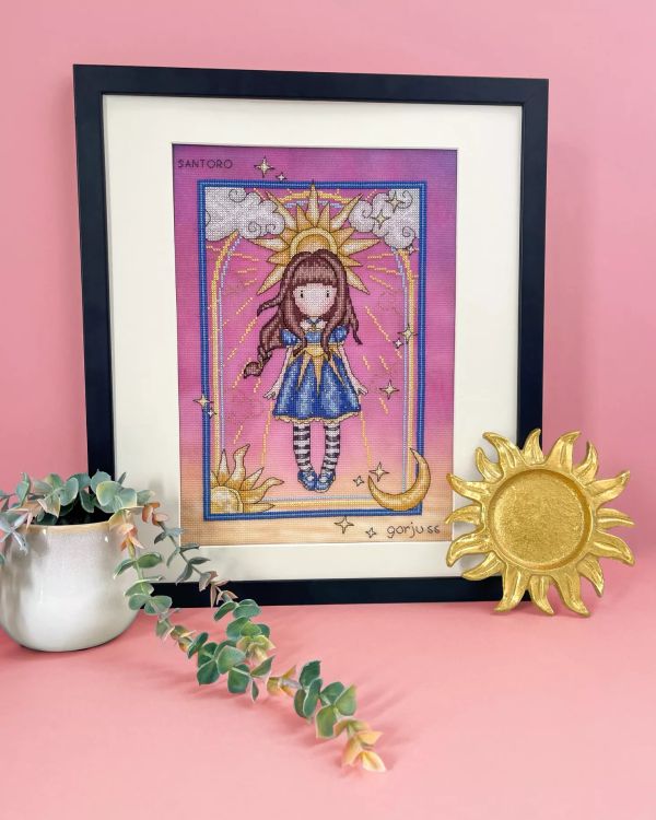 Bring a touch of magic and warmth to your stitching with Ray of Light from Bothy Threads, featuring enchanting artwork from the beloved Gorjuss collection by Santoro London. This charming design captures a dreamy scene of a young girl surrounded by celestial elements, set against a soft ombre background that fades beautifully from pink to golden tones.