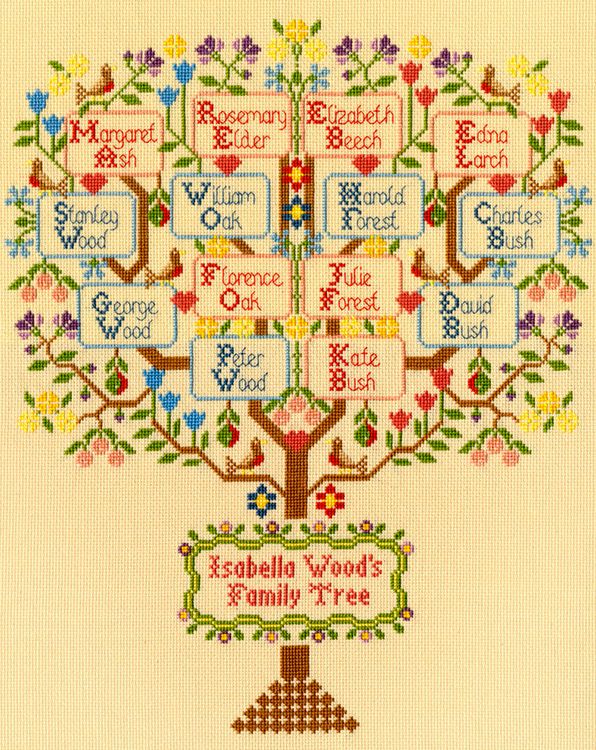 The perfect gift for the genealogist in the family, you can now map your family tree the fun, fail safe way with this traditional family tree sampler cross stitch kit from Bothy Threads. The wonderful tree like design features lots of different branches to personalise each part of the tree accordingly. Near the trunk of the tree there is also space to stitch the name of your family tree, such as 'Isabella Wood's Family Tree'.