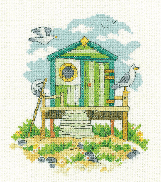 Bring a touch of seaside charm to your stitching with the Green Beach Hut Cross Stitch Kit, from Heritage Crafts. This delightful design captures the calm and character of a classic coastal scene, featuring a quaint green beach hut set against a serene shoreline.