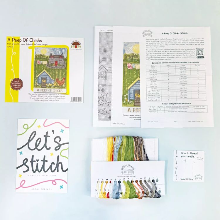A Peep of Chicks Cross Stitch Kit, by Bothy Threads, is a delightful countryside design that celebrates the charm of rural life. Featuring a proud hen and her fluffy chicks gathered outside a quaint cottage and henhouse, the scene is full of warm colours and charming details that bring the farmyard setting to life.