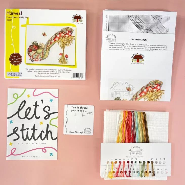 Celebrate the beauty of the harvest season with this charming Harvest Cross Stitch Kit, from Bothy Threads, based on original artwork by Sally King. Featuring a unique and contemporary design, the piece showcases a stylish shoe filled with seasonal produce, blending creativity with rustic charm.