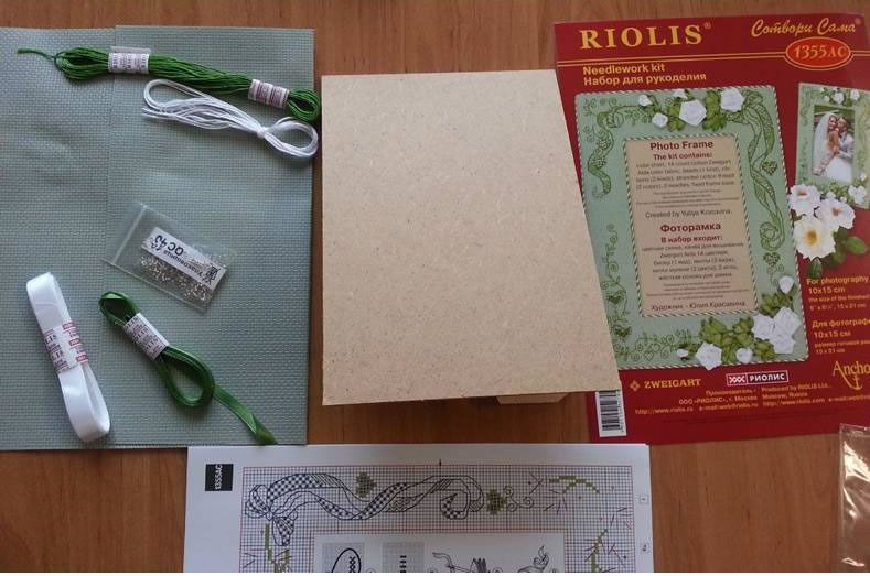 Kit Contains: Fabric, thread, green and white ribbon, beads, mount / stand, needle, chart and full instructions